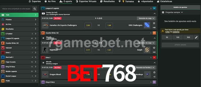 A aposta Bet768 oferece aos jogadores a experiência mais conveniente de apostas em eSports!